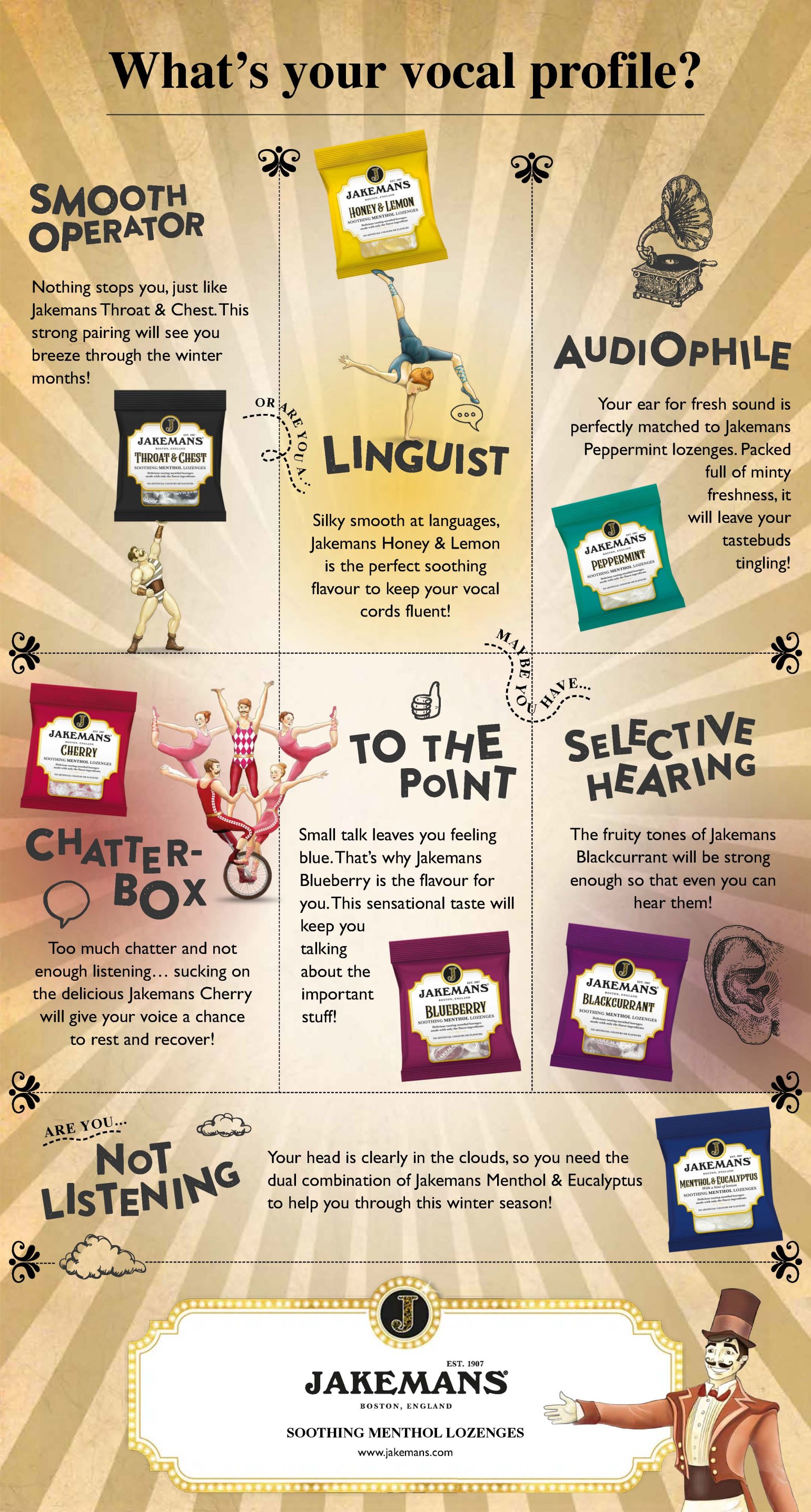 Did you know that Jakemans marvellous menthol lozenges offers seven delicious flavours to help keep your voice in tip top condition this winter!